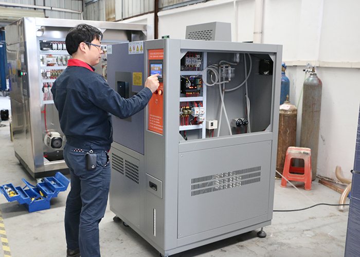 1、恒溫恒濕試驗(yàn)箱升溫系統(tǒng)加溫裝置是控制恒溫恒濕箱能否升溫的一個(gè)關(guān)鍵;控制器在得到升溫的指令的時(shí)候就會(huì)輸出電壓給繼電器,固態(tài)繼電器上面大概會(huì)有3-12伏的直流電,交流端就相當(dāng)于導(dǎo)線接通;同時(shí)接觸器也會(huì)吸合,在加熱器的兩端會(huì)有電壓使其發(fā)熱,然后通過(guò)循環(huán)風(fēng)機(jī)的帶動(dòng),將熱量帶到箱里面,就使得試驗(yàn)箱可以升溫。在溫度快要達(dá)到設(shè)定...
